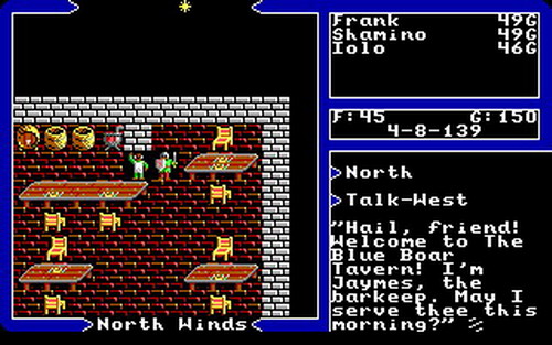Ultima V - Lazarus spielt sich wie ein auf eine moderne Grafikengine portiertes Ultima VII. D.h. es hat neben dem Tag-Nacht-Zyklus auch Wetter, natürlich gibt es scheduled NPCs und selbstverständlich haben diese auch - übrigens sehr liebevoll und professionell gemachte - Charakterporträts. Die Anzahl der NPCs mit Dialog wurde von 135 auf 284 erhöht, die Dialogtiefe wurde massiv erweitert und entspricht der von Ultima VII. Wie in Ultima VII hat der Avatar eine Stoffkarte im Gepäck. Sobald unser Held im Besitz eines Sextanten ist, kann der aktuelle Standort auf der Karte abgelesen werden. Eine Taschenuhr gibt neben der Uhrzeit auch - grafisch sehr schön gemacht - die aktuellen Phasen der beiden Monde Britannias an, so dass die Reiseziele der Mondtore einfach bestimmt werden können.