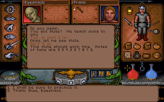Remember Eyesnack's words. Me play "Mardin's Song of Wonder" lot of times. Said that you play it in the right place, wondrous thing happen. Eyesnack also taught you the right tune.